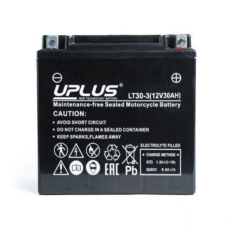 Мото аккумулятор Uplus LT30-3 AGM 30 Ач (YIX30L) стартерный для запуска двигателей мотоциклов, квадроциклов, снегоходов, гидроциклов.