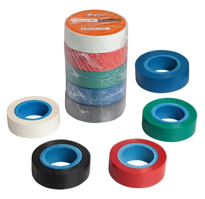 Изолента ПВХ. Набор 5 шт.: синий, черный, красный, зеленый, белый. Длина (м): 10.