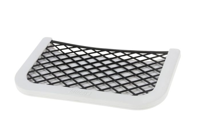Накладной карман с гибкой удерживающей сеткой предназначен для хранения журналов и мелких предметов. Изготовлен из пластмассы, стойкой к ультрафиолету. Способы крепления: на врезные винты или на клейкую ленту, размещенную на задней стенке кармана.