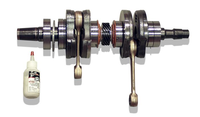 На коленчатом вале произведена заменена всех подшипников на новые, также заменены шатуны и сальники. Коленчатый вал проверен на биение в соответствии с сервис мануалом. В комплекте с коленвалом поставляется тюбик смазки для подшипников (аналог ISOFLEX).