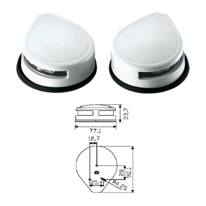 Комплект светодиодных ходовых огней в белом пластиковом корпусе и черной резиновой прокладкой. Огни устанавливаются на бортах судна (зеленый огонь – на правом, красный – на левом) и освещают непрерывным светом дугу горизонта в 112,5°. Цвет огня: красный/зеленый, цвет корпуса: белый, в комплекте 2 огня,