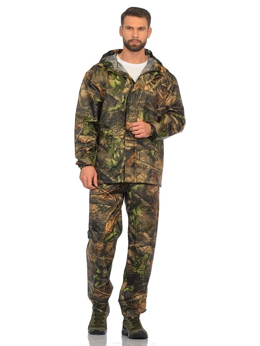 Прекрасная защита от дождя и ветра. Надевается поверх любой одежды. Костюм изготовлен из легкой и прочной ткани. Цельнокроеная куртка (изначальное отсутствие швов на плечах), куртка на молнии под ветрозащитной планкой, капюшон стягивается шнуром, проклеенные швы не дают проникать внутрь воде и увеличивают сопротивляемость разрыву, нижние прорезные карманы под планкой на куртке, рукава на резинке, пояс, рукава и низ брюк на резинке, имеется чехол с петлей для ношения на поясе, все швы проклеены. Страна производства: Россия.