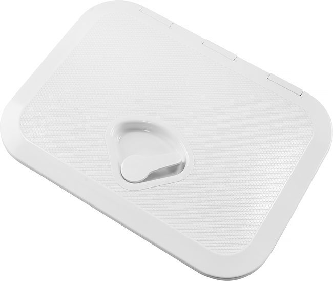 Люк из белого ABS термопластика. Крышка с не скользящей поверхностью. Оснащен резиновыми уплотнительными элементами, что делает люк полностью водостойким. Наружные размеры: ширина: 270 мм, длина: 375 мм. Размер проема: ширина: 192 мм, длина: 291 мм.