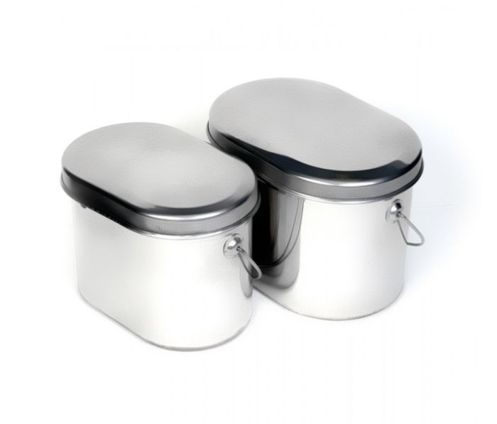 Набор туристической посуды. Состав набора: 2 котелка (кан) – 3,3 л, 2,2 л. Общий вес набора – 1,3 кг, материал – нержавеющая сталь AISI 304. Набор в чехле. Швы сварные, сварка выполнена в аргоновой среде без применения электродов или флюсов.