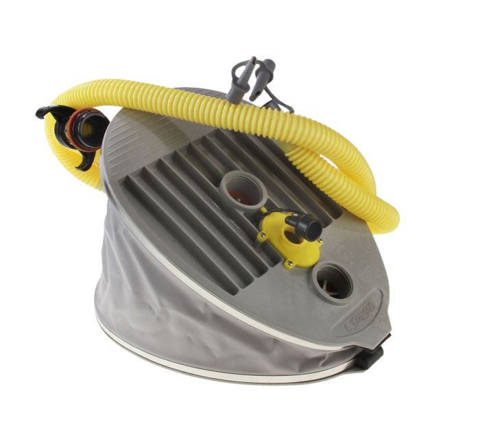 Ножной насос – идеальное решение для лодок с надувным полом AirDeck (палуба высокого давления). Bravo 9 имеет две камеры объемом 6,5 л и 1,5 л. Опорные поверхности насоса выполнены из полиамида, упрочненные стеклопластиком, а «гармошка» - из армированного ПВХ. Давление макс.: 0.3/1 бар, объём камер: 6.5/1.5 л., кол-во камер: 2, производитель: Scoprega (Италия).