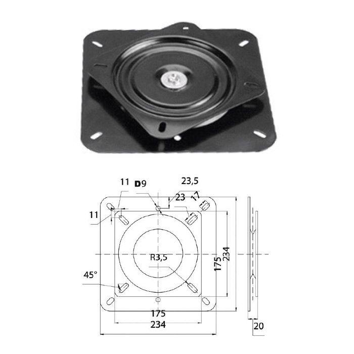 Переходник-основание для сидений (мет/черн) 175х175мм и 234х234мм