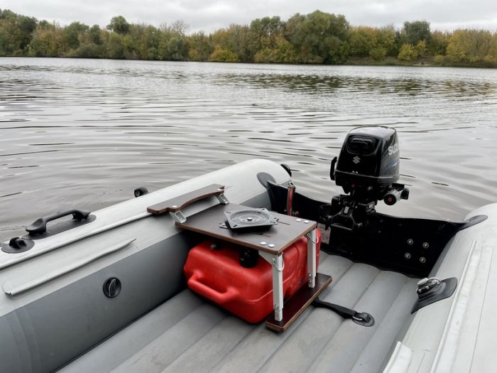 Рекомендуем для лодок с шириной кокпита больше 76 см Под стойку помещается стандартный бак 24 литра Качественная порошковая окраска, крепеж оцинкованный, толщина стали всех кронштейнов 2 мм, ножки 2 мм и 1.5 мм. Ламинированная фанера первого сорта (ФОФ Россия). Толщина фанеры 15 мм Торцы изделий покрыты влагостойкой пропиткой. Выточены пазы для установки поворотной платформы. Высота от пола до верха столешницы регулируется для точной установки на Вашу лодку от 280 мм до 400 мм с шагом в 20 мм. На ножке сделана накладка из EVA, чтобы не переживать за потёртости Вашей лодки. Вылет ножки обеспечивает устойчивость сидения (Стойки универсальны для водителя и пассажира). В комплект входит набор крепежа для установки стандартной поворотной платформы.