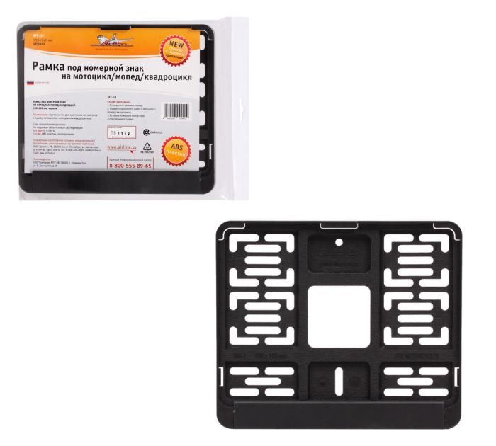 Применяется для крепления гос.номеров к кузову мотоциклов, мопедов или квадроциклов. Рамка изготовлена из материалов, не подверженных морозу и перепадам температур. Установка рамки не займет много времени, т.к. изделие имеет простой механизм крепления-нижнюю запорную планку.