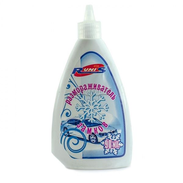 Размораживатель замков RUNIS 90 мл. Особенности размораживателя: не вызывает коррозии металлов, не наносит вреда пластиковым и резиновым элементам, специальный дозатор способствует удобному и точному проникновению жидкости в замерзшие детали замков.