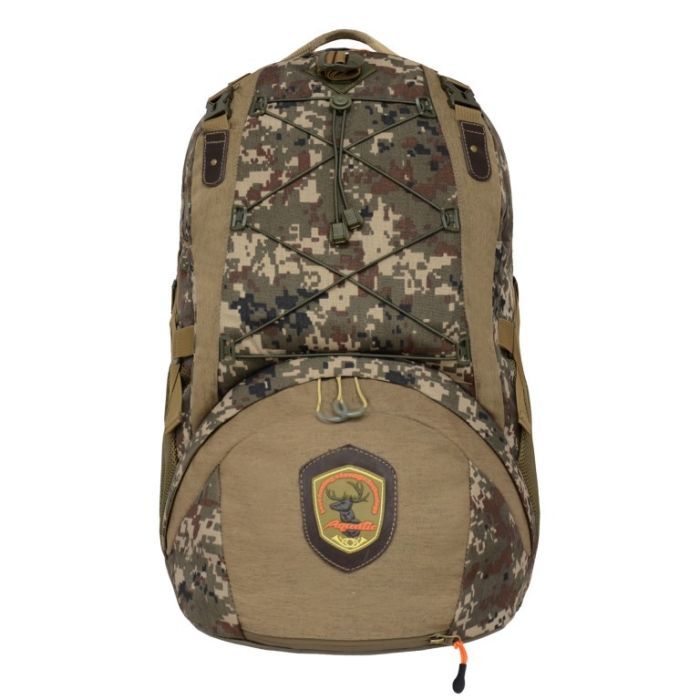 Рюкзак для охоты РО-46. Пояс с дополнительными карманами и патронташем позволяет эффективно перераспределять нагрузку, а конструкция с регулируемой подвесной системой распределяет вес между плечами и бедрами. Основной объем разделяется съемной перегородкой на молнии. Нижний вход. Два малых боковых кармана для переноски длинномерных грузов, боковые карманы изменяемого объема, плюс фронтальный карман. Компрессионные стяжки. Донный карман для влагозащитной накидки. Убирающийся внутрь карман на молнии и фиксатор для оружия, удобная верхняя ручка и усиливающие элементы из натуральной кожи.