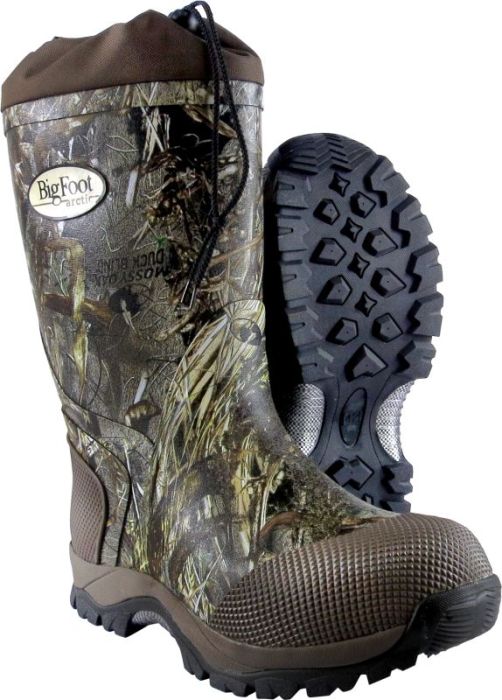 Противоскользящая подошва из натуральной резины подходит для использования в суровых условиях при экстремально низких температурах, в том числе и на льду. Усиленные области пятки и мыска из текстурированной резины для дополнительной защиты. Комфорт Наружная часть сапог водонепроницаема, выполнена из резины. Многослойный сапожок-утеплитель для лучшего комфорта и тепла. Конструкция/Функциональность Слой EVA в подошве для амортизации и дополнительного утепления. «Юбка» со шнурком на зажиме. Специальный выступ на пятках для удобного снятия сапог без помощи рук. Запатентованный камуфляж Mossy Oak Duck Blind или фирменный зимний камуфляж Legion Winter Camo на выбор.