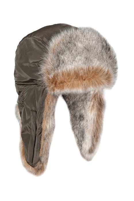 Шапка ушанка зимняя Евро Волк цвет Хаки ткань Taslan (Размер 56-58 )