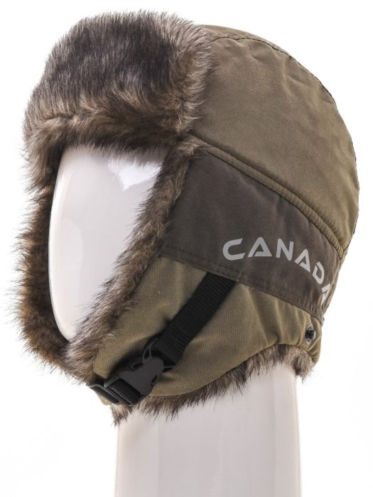 Шапка ушанка зимняя Канада цвет Хаки ткань Finlandia (Размер 56-58 )