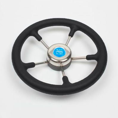 Рулевое колесо из черного полиуретана и спицами из немагнитной стали. Прочный штурвал подходит почти на все редукторы и гидравлические помпы надувных пвх/моторных лодок, рибов, катеров без переходников. Диаметр 280 мм. Страна и фирма изготовления - Италия/MaviMare.