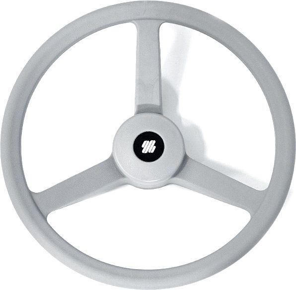 Рулевое колесо, шпоночная посадка. Подходит для большинства рулевых редукторов. Общий диаметр: 335 мм., материал зоны охвата: ударопрочный термопластик.