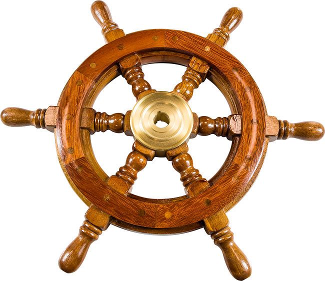 Рулевое штурвальное колесо выполнено в классическом стиле. Посадочное отверстие штурвала - конусное. Втулка изготовлена из латуни, а само колесо - из дерева. Общий диаметр: 415 мм., диаметр колеса: 245 мм., ширина: 45 мм.,