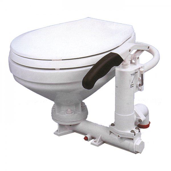 Унитаз судовой с ручной прокачкой. Смыв и ополаскивание производится специальным ручным насосом. Простейшая конструкция гарантирует надежность и долгий срок службы. Белая чаша, выполненная из керамики, снабжена белым пластиковым сидением и крышкой. Все металлические детали и крепления выполнены из нержавеющей стали. Основание, ручной насос и установочное колено сделаны из высокопрочного пластика. Длина 476 мм., ширина 483 мм., высота 352 мм. Диаметр патрубка впускного отверстия 19,5 мм., диаметр патрубка сливного отверстия 37,8 мм.