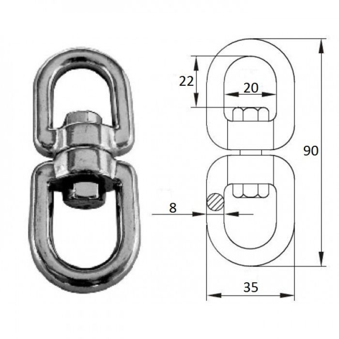 Вертлюг может быть использован в качестве шарнирного элемента такелажа или рыболовной снасти.