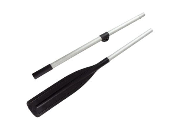 Весло имеет ручку, загнутую лопасть, передвижную втулку, устанавливающуюся в поворотный стержень уключины и полную длину 1600 мм. Длина весла: 1600 мм., пластиковая черная лопасть, разборное пополам, передвижная втулка (хомут весла), материал: алюминий, пластик.