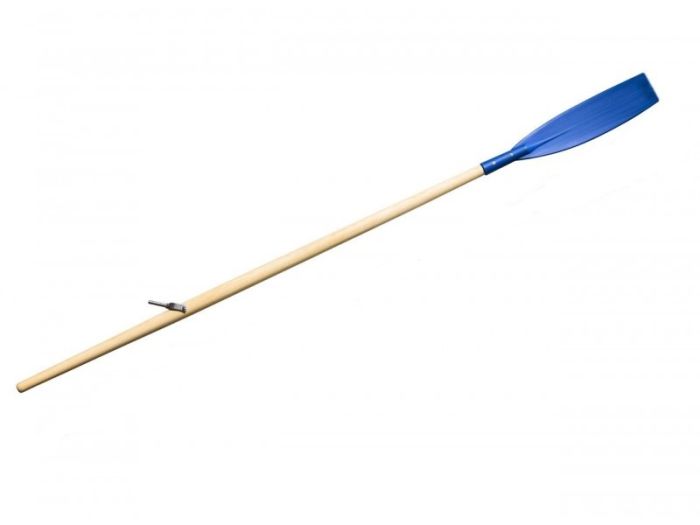 Весло деревянное в комплекте с уключиной. Веретено не имеет сучков и сколов и покрыто лаком. Материал лопасти - пластик. Длина -1,8 м.