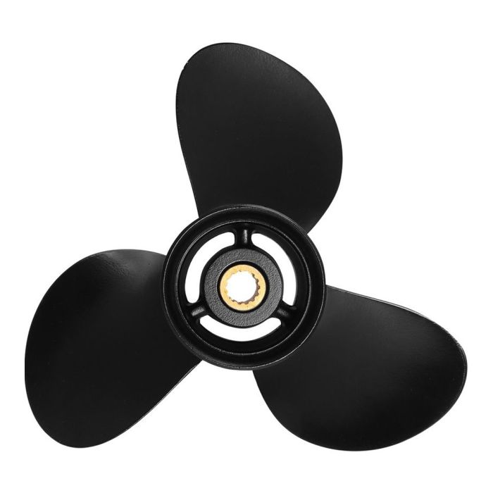 Алюминиевый трехлопастной гребной винт с резиновой втулкой амортизатором для подвесных лодочных моторов Tohatsu мощностью 9.9-18 л.с.